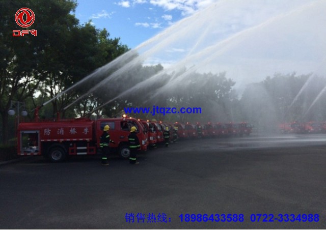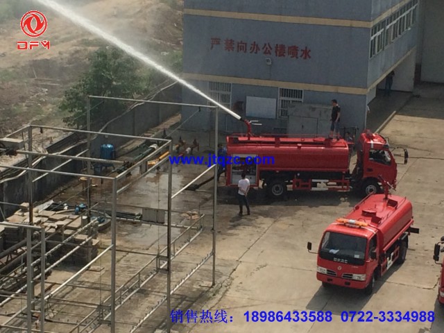 湖北江南專用特種汽車有限公司專門為小區(qū)、村鎮(zhèn)、糧庫、碼頭、校園、商場、工業(yè)園設(shè)計了一種簡易消防車又稱多功能灑水車,它有灑水車的前沖、后灑、側(cè)噴和工作平臺,它的前沖寬度能達到14米,側(cè)噴水炮射程可以達到24米。